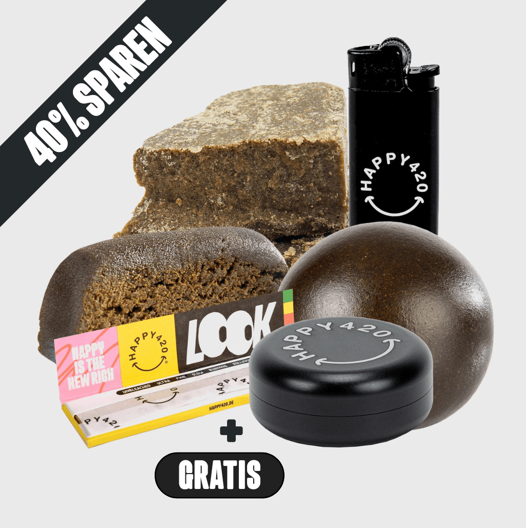 Einen fein zusammengestellten Probiermix, der die besten Haschsorten direkt aus den Bergen Marokkos vereint . Dazu gibts noch eine Stashbox, eine Packung Papes und eines unserer BIC Feuer.