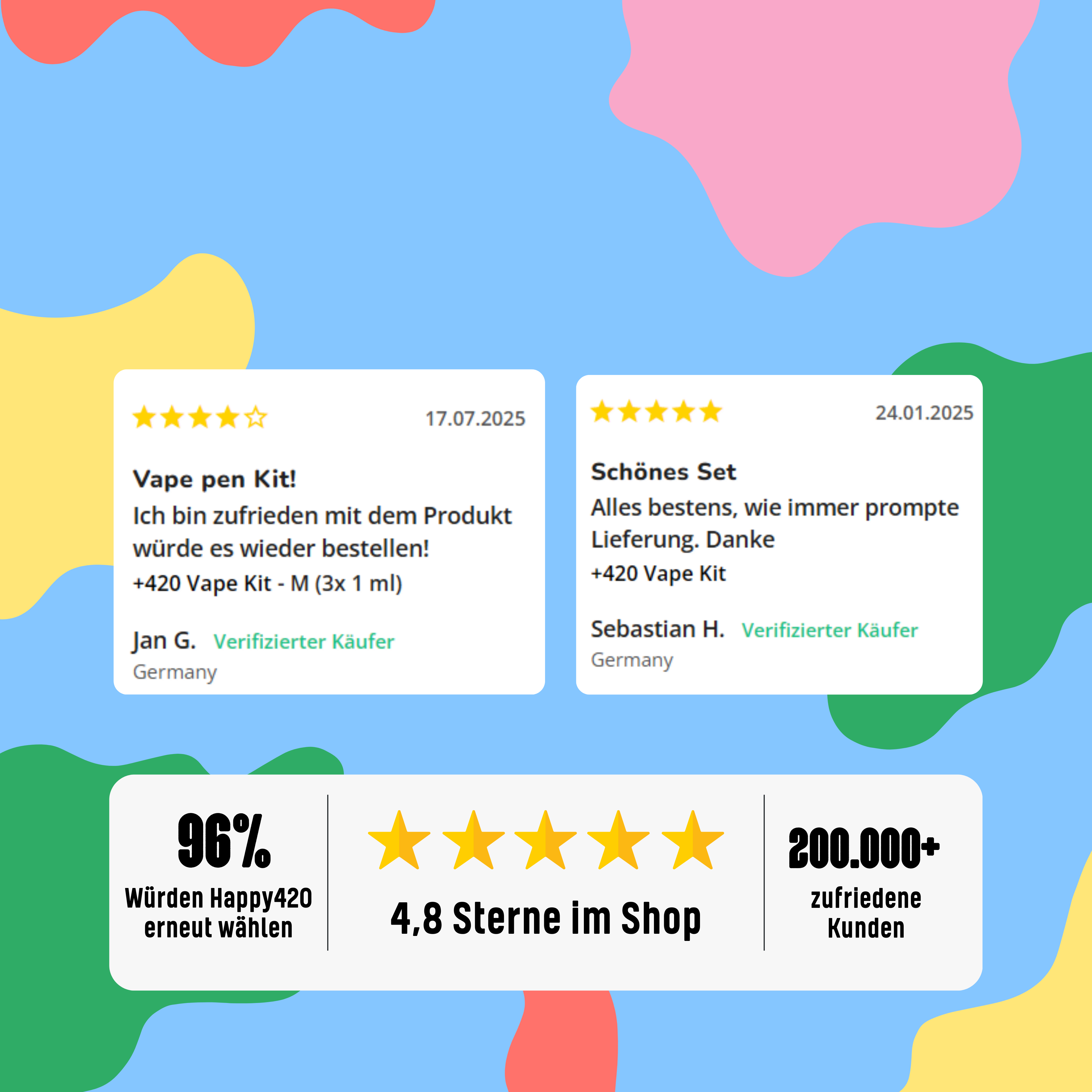 Wir verstehen, dass Vertrauen beim Online-Kauf von Cannabinoiden das A und O ist. Deshalb bieten wir dir nicht nur ein sorgfältig kuratiertes Sortiment, sondern auch: